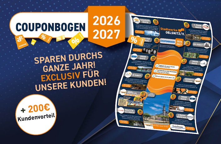 Beantragen Sie jetzt Ihren Couponbogen mit exklusiven Rabatten und Abenteuern in der Region! Gern senden wir diesen unseren Strom-, Gas- und Breitbandkunden außerhalb der Grundversorgung zu.