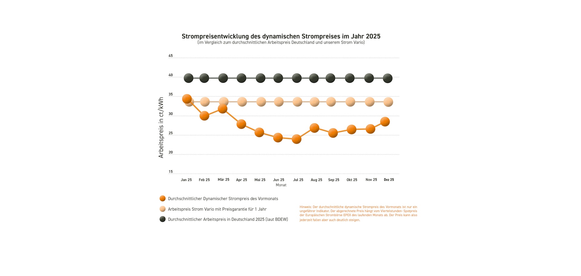 keinerlei Preisgarantie auf den reinen Energiepreis Strom und damit auf den Arbeitspreis