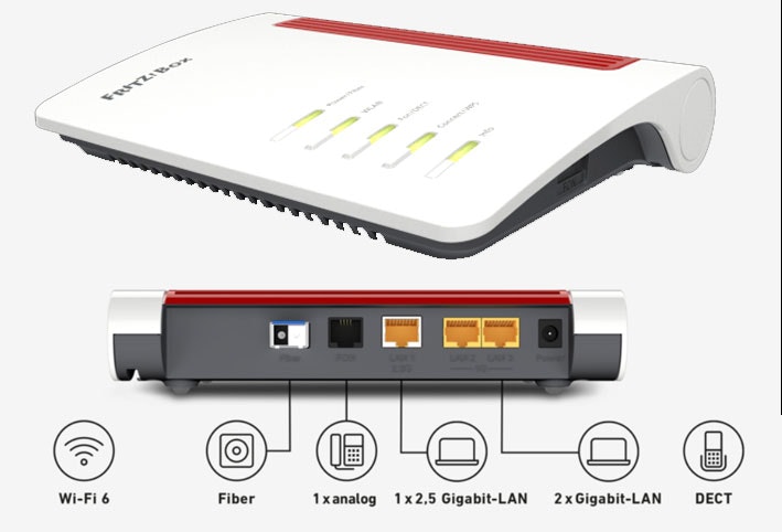 Glasfaser, WLAN AX, Dual-WLAN, 2,4 GHz, 5 GHz, 1-Gigabit LAN, 2,5-Gigabit, LAN, Telefonie, DECT